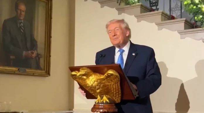 In his message to supporters at the Christmas party, President Trump acknowledged the challenges of the past year but also expressed hope for the future. He urged everyone to come together and support the new administration, saying, “We’re all one beautiful American family, and we will rise to new heights, we will soar to new heights.”